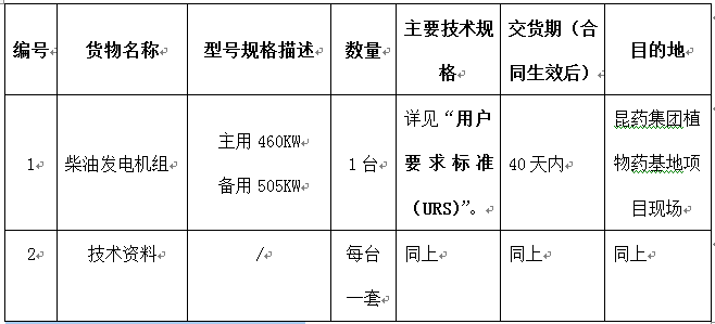 凯时尊龙集团植物药基地项目柴油发电机组设备采购招标公告