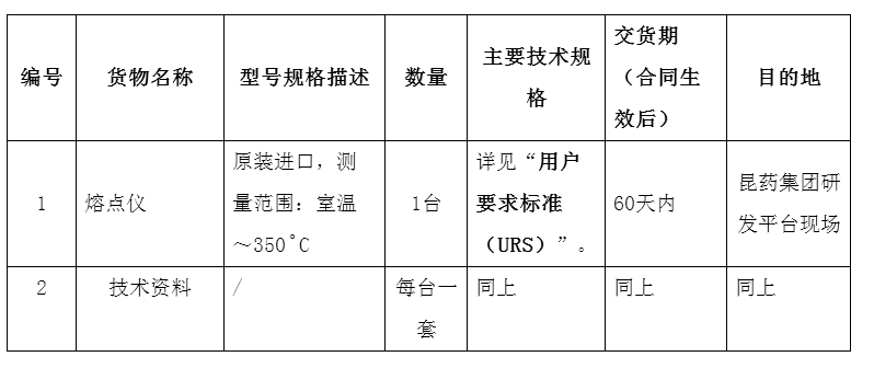 凯时尊龙集团研发平台熔点仪设备采购招标公告