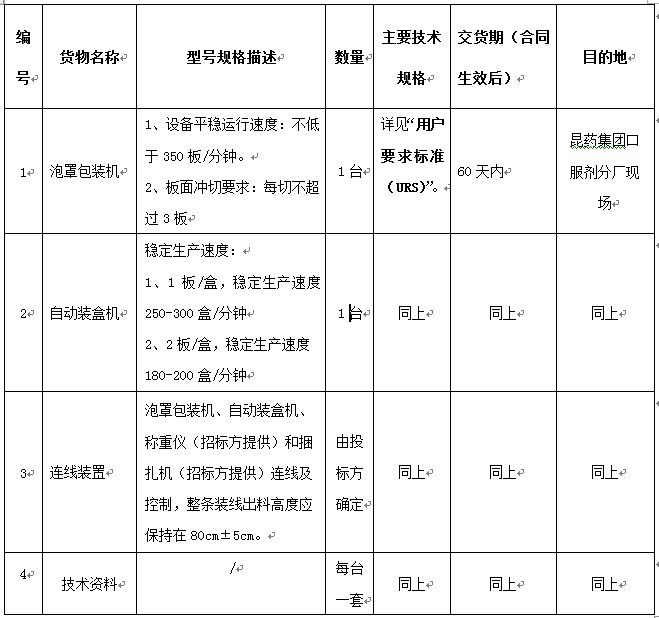凯时尊龙集团口服剂分厂项目泡罩包装线设备采购招标公告