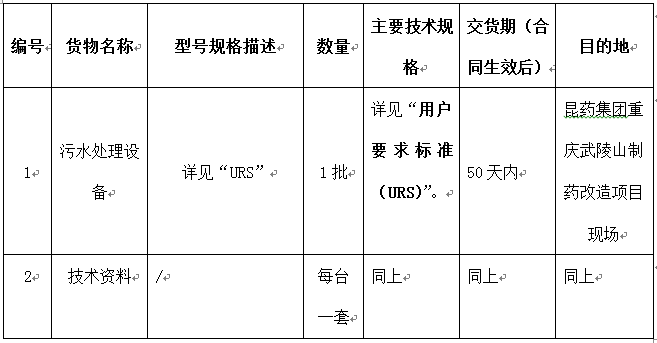 凯时尊龙集团重庆武陵山制药有限公司污水处理设备采购招标公告