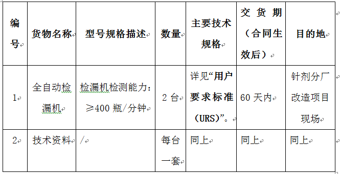 凯时尊龙集团针剂分厂全自动检漏机设备采购招标公告
