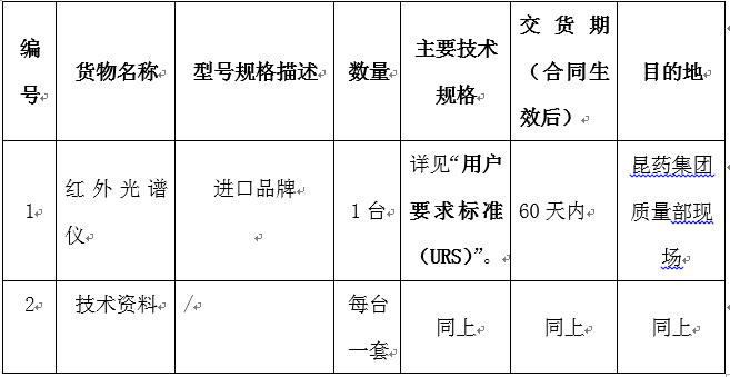 凯时尊龙集团质量部红外光谱仪设备采购招标公告