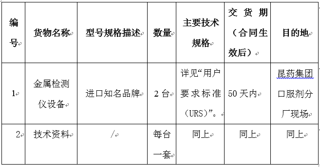 凯时尊龙集团口服剂分厂金属检测仪设备采购招标公告