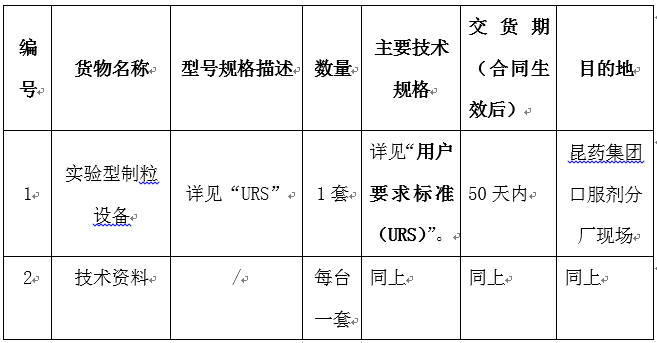 凯时尊龙集团口服剂分厂实验型制粒设备采购招标公告