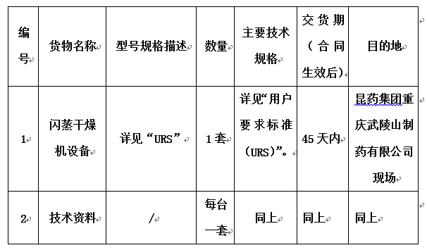 凯时尊龙集团重庆武陵山制药有限公司闪蒸干燥机设备采购招标公告