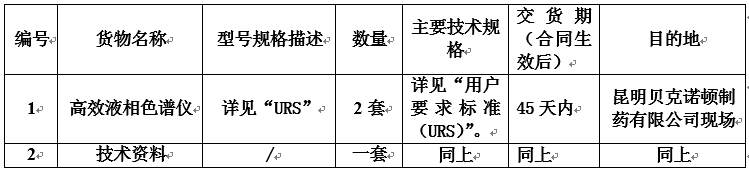 昆明贝克诺顿制药有限公司高效液相色谱仪采购招标公告