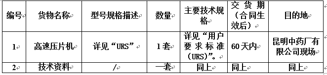 昆明中药厂有限公司高速压片机采购招标公告