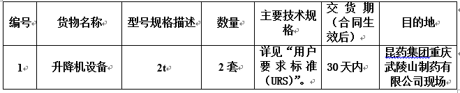凯时尊龙集团重庆武陵山制药有限公司升降机设备采购招标公告