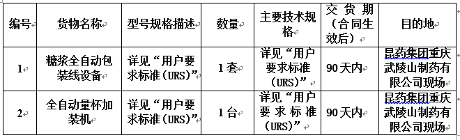 凯时尊龙集团重庆武陵山制药有限公司糖浆全自动包装线设备采购招标公告