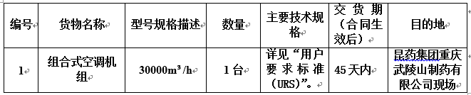 凯时尊龙集团重庆武陵山制药有限公司组合式空调机组采购招标公告