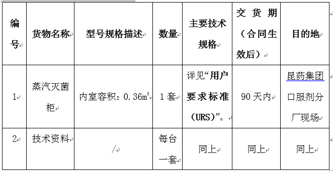 凯时尊龙集团口服剂分厂蒸汽灭菌柜设备采购招标公告