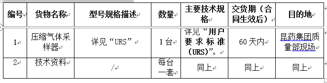 凯时尊龙集团质量部压缩气体采样器设备采购招标公告