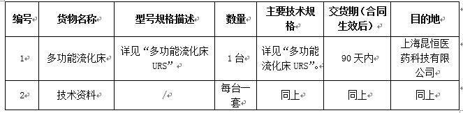 凯时尊龙集团上海昆恒医药科技有限公司多功能流化床采购招标公告
