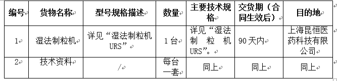 凯时尊龙集团上海昆恒医药科技有限公司湿法制粒机采购招标公告