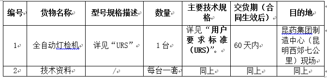 凯时尊龙集团针剂分厂全自动灯检机设备采购招标公告