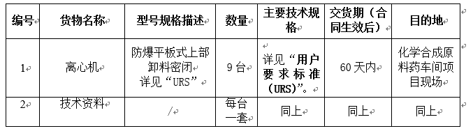 凯时尊龙集团化学合成原料药车间离心机设备采购招标公告