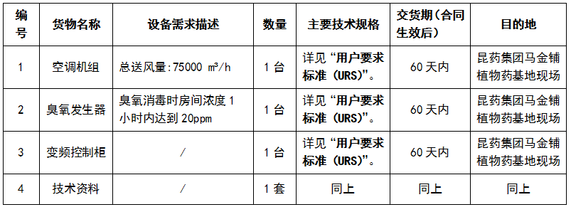 凯时尊龙集团马金铺研究院化学合成原料药中试车间项目净化空调机组设备采购招标公告